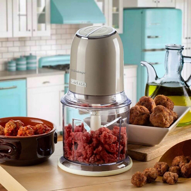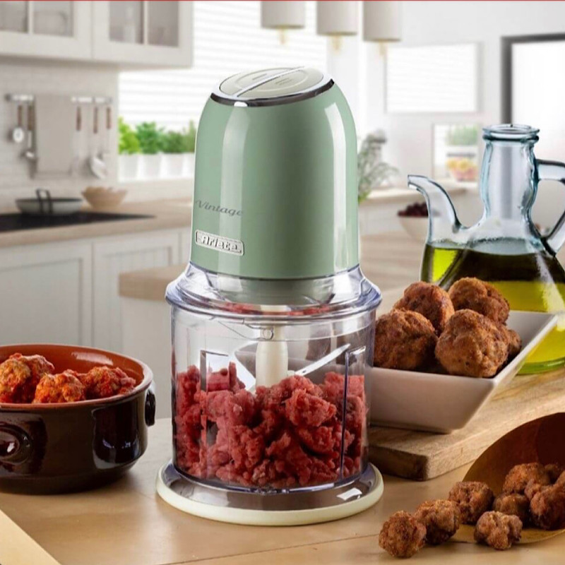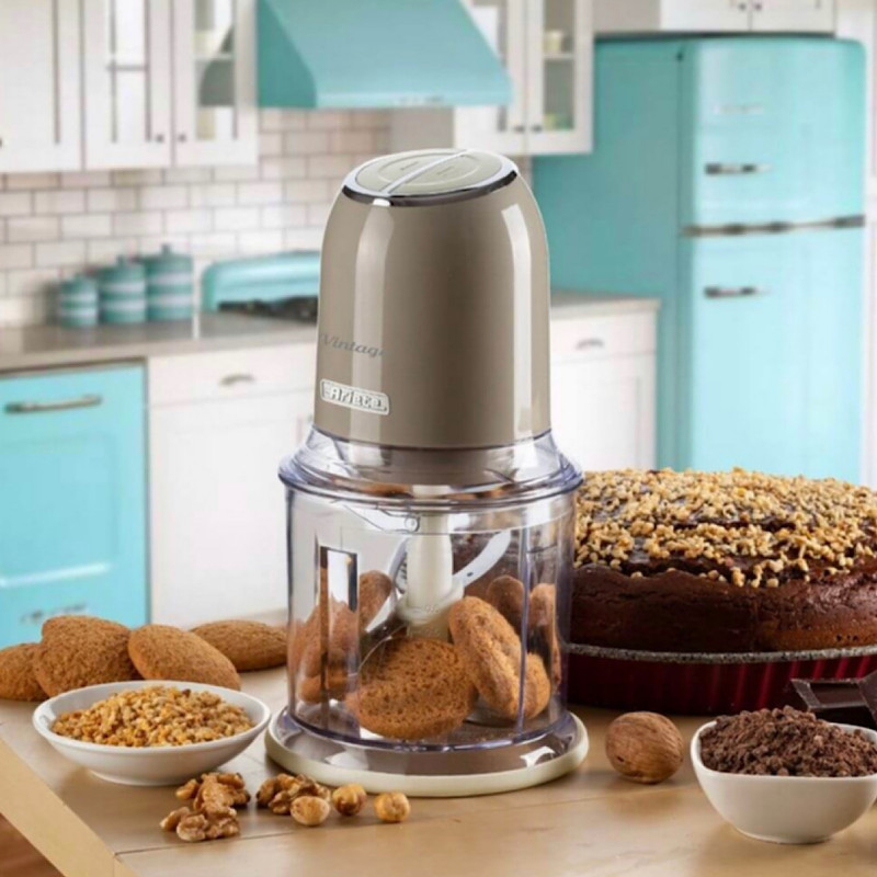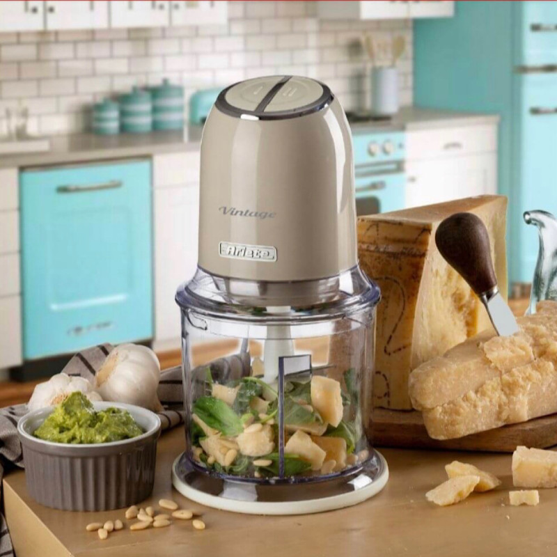 خرد کن مدل 438 Vintage Ariete با یک محصول ضروری برای دستور العمل های شما در آشپزخانه غنی شده است: خردکن با خطوط یکپارچه سازی با سیستم عامل و رنگ های پاستلی ملایم ، مناسب برای آوردن حسی از سبک و عملکرد به آشپزخانه شما است. به لطف قدرت 400 وات و 4 تیغه استیل ضد زنگ ، دستگاه Vintage Chopper به شما این امکان را می دهد که هر ماده ای را برای دستور پخت خود خرد کنید : از سبزیجات گرفته تا گوشت ، پنیر ، نان ، میوه های خشک و حتی یخ. دارای 2 سرعت ، که با دو دکمه در بالای خردکن قابل کار است ، به شما امکان می دهد غذا را خرد یا ریز خرد کنید ، در حالی که پایه های ضد لغزش حداکثر چسبندگی محصول را به میز کار تضمین می کند. هیچ راگوی خانگی بدون پیاز ، کرفس ، هویج و جعفری خوب خرد شده وجود ندارد. با خردکن Vintage ، می توانید همه مزه ها را به طور یکنواخت در چند لحظه کاهش دهید تا سریع برای خوشمزه ترین دستور العمل های خود آماده شود. با آماده سازی های آماده خداحافظی کنید! به لطف غذاساز ، میتوانید مقادیر زیادی گوشت را برای فریز کردن در قسمتهای مناسب آماده کنید تا در صورت تمایل از آن استفاده کنید. تیغه های فولادی ضد زنگ و قدرت خردکن وینتیج به شما این امکان را می دهد که هر ماده از جمله یخ را ریز خرد کنید. خردکن در واقع یک یخشکن راحت است : از تهیه انواع لجنها در خانه لذت ببرید یا با کوکتلهای تازه و رفع تشنگی لذت ببرید تا شبهای خود را در خانه لذت ببرید.
